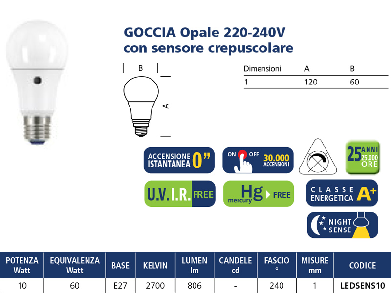 CO22540 BOT LIGHTING LAMPADA LED GOCCIA 11.1W E27 C. 1060LmLogin