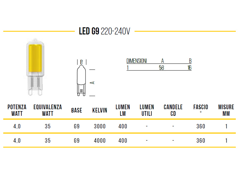 CO26469 BOT LIGHTING LAMPADA BISP. LED G9 4.2W M. 400LLogin